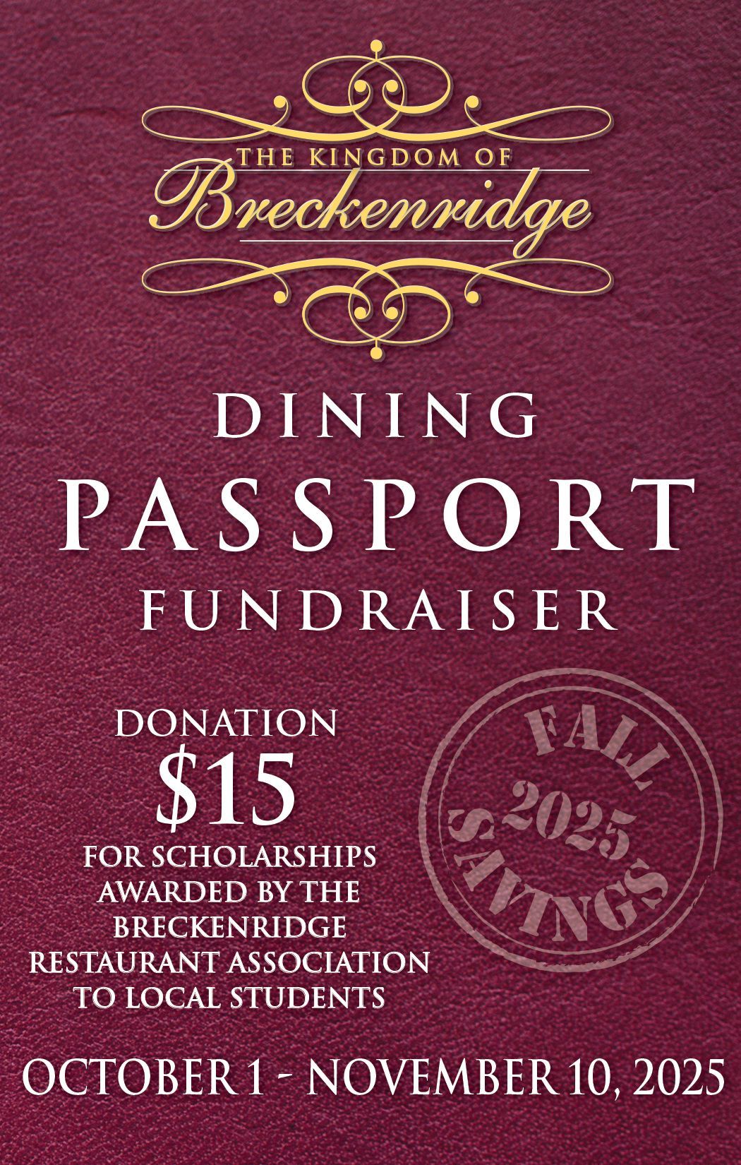 Passports cost only $15 and proceeds fund scholarships awarded by the Breckenridge Restaurant Association to local students. The Restaurant Association awarded about $13,000 in scholarships in 2025 alone! This is just one of the ways in which the Breckenridge Restaurant Association and its members give back to the community.